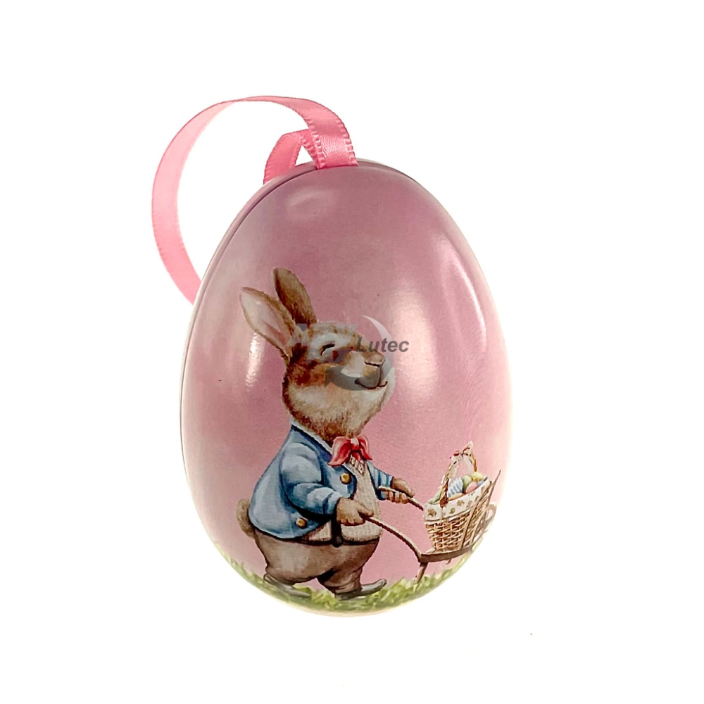 Stülpdeckeldose aus Weißblech; in Form eines Ostereis mit einem ansprechenden Design ist nicht nur eine nachhaltige Option für Osterschmuck, sondern auch eine großartige Möglichkeit, Pralinen, Gebäcke und andere köstliche Leckereien zu präsentieren. Diese Eidose aus Weißblech ist ein echtes Sammlerstück und ein Blickfang in jeder Osterdekoration.