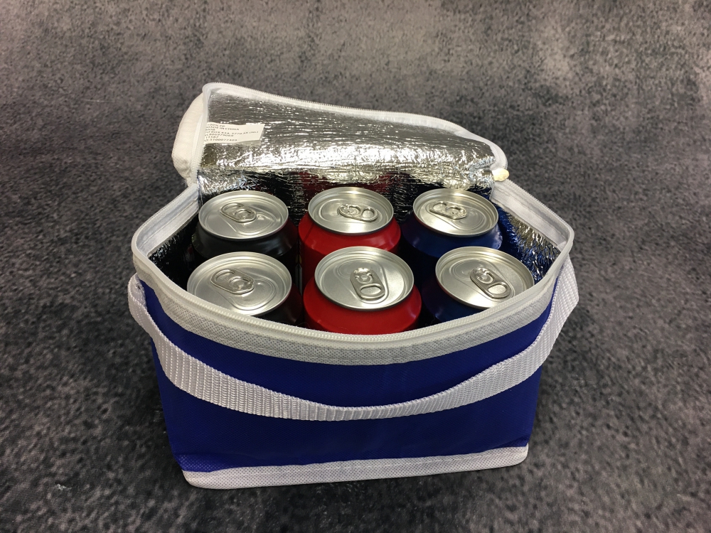 Kleine Kühltasche (ohne Inhalt). Perfekt um das Lunchpaket oder 6 Softdrink-Dosen kühl zu halten.