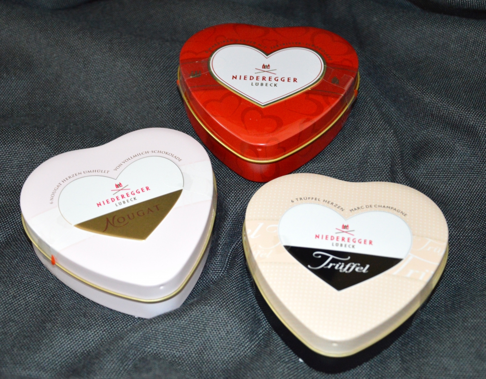 Herzdose mit 6 herzförmigen Pralinen