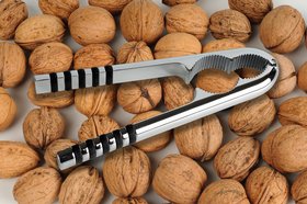 Formschöner Nussknacker aus Metall mit Streifenmuster.