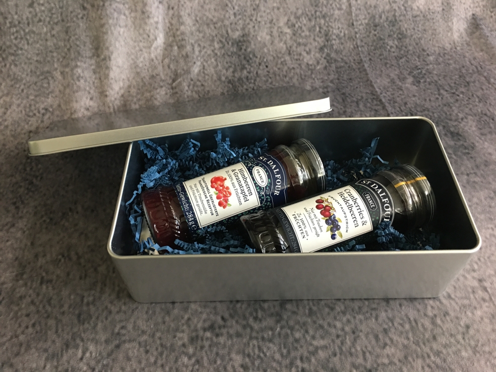 Die "Rhapsodie de fruit" von St. Dalfour werden – ohne Zusatz von Zucker – im Herzen Frankreichs hergestellt. Gesüsst wird allein mit konzentriertem Traubensaft und die grossen Fruchtstücke verleihen dem Fruchtaufstrich einen aussergewöhnlichen fruchtigen Geschmack. Präsentdose gefüllt mit zwei Fruchtausstrichen von St. Dalfour.