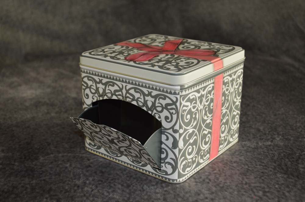 Quadratische Scharnierdeckeldose mit Schublade 147x147x123 mm