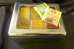 Scharnierdeckeldose mit Fenster, 6 Trennfächern ca. 195 x 145 x 90